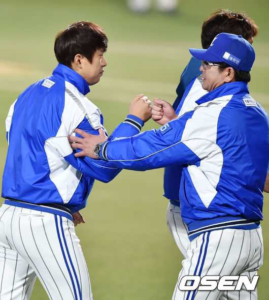 경기를 마치고 삼성 승리투수 윤성환이 류중일 감독과 하이파이브를 하고 있다. / rumi@osen.co.kr