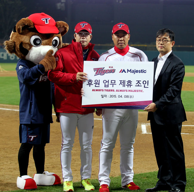 KIA는 지난 8일 광주-기아 챔피언스 필드에서 허영택 단장과 방병성 마제스틱 코리아 대표이사가 참석한 가운데 후원 조인식을 가졌다.