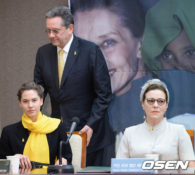 9일 오전 서울 중구 프레스센터에서 '오드리 헵번 가족(아들 션 헵번, 손녀 엠마 캐슬린 페러)과 함게 하는 세월호 기억의 숲 조성' 기자회견이 열렸다.