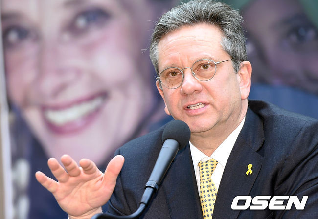 9일 오전 서울 중구 프레스센터에서 '오드리 헵번 가족(아들 션 헵번, 손녀 엠마 캐슬린 페러)과 함게 하는 세월호 기억의 숲 조성' 기자회견이 열렸다.
