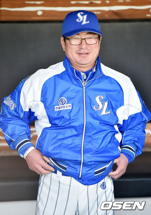 9일 오후 대구시민운동장 야구장에서 '2015 타이어뱅크 KBO 리그' 삼성 라이온즈와 롯데 자이언츠의 경기가 열릴 예정인 가운데, 양팀 훈련 시간에 삼성 류중일 감독이 덕아웃에서 환하게 웃고 있다.