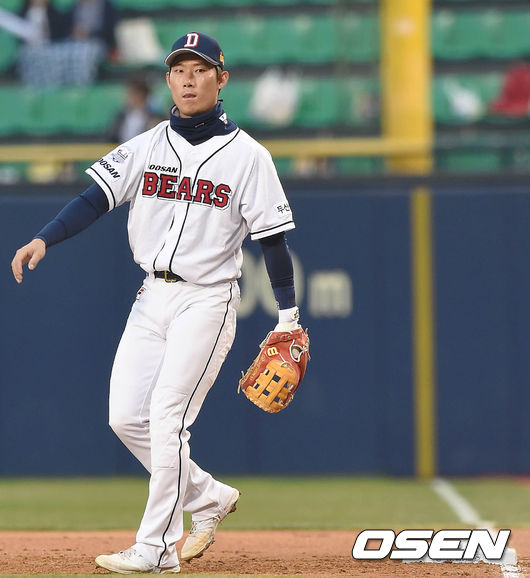 9일 오후 서울 잠실야구장에서 열린 '2015 타이어뱅크 KBO 리그' 두산 베어스와 넥센 히어로즈의 경기, 1회초 두산 고영민이 선수생활 최초로 1루수로 출전하고 있다.