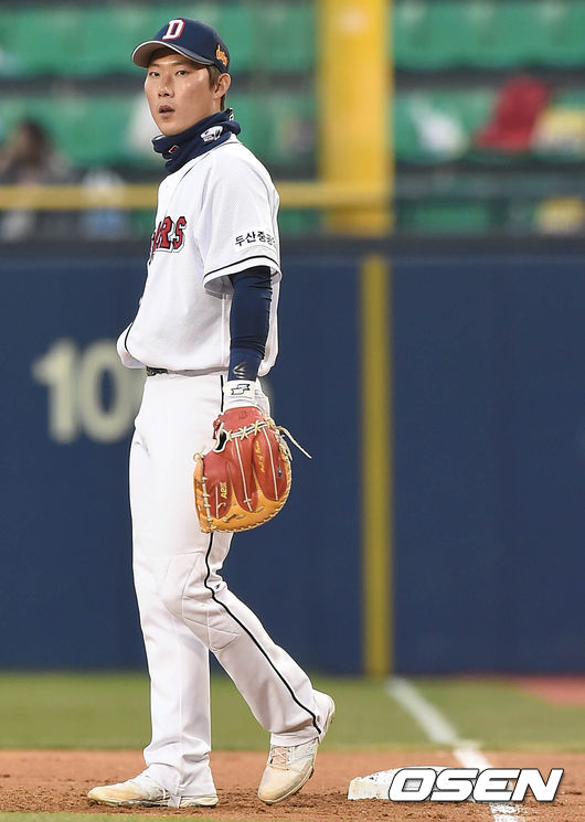 9일 오후 서울 잠실야구장에서 열린 '2015 타이어뱅크 KBO 리그' 두산 베어스와 넥센 히어로즈의 경기, 1회초 두산 고영민이 선수생활 최초로 1루수로 출전하고 있다.