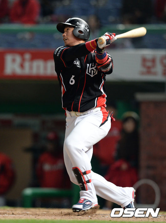 3회초 2사 3루에서 kt 박경수가 좌중간을 가르는 적시 2루타를 치고 있다.