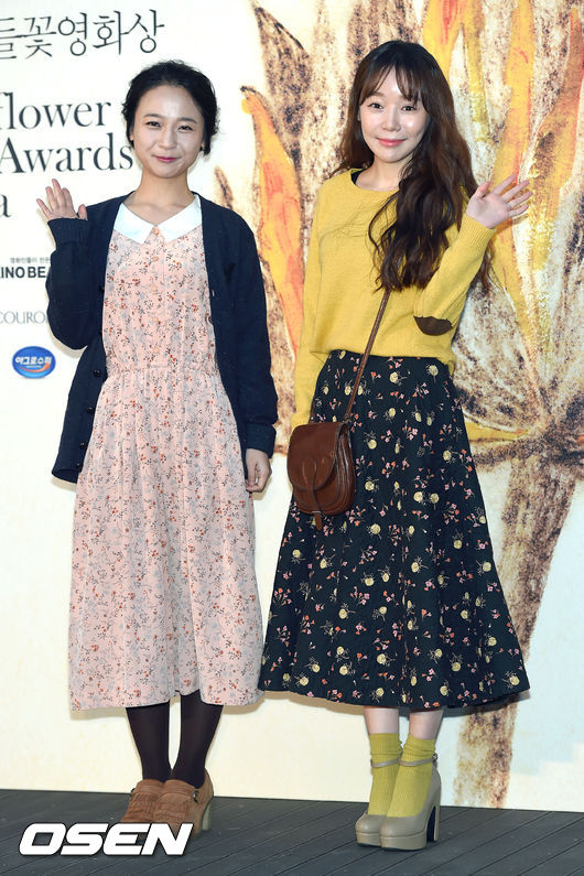 9일 서울 남산 문학의 집에서 진행된 '제2회 들꽃영화상'에서 배우 김꽃비와 소이가 포즈를 취하고 있다.