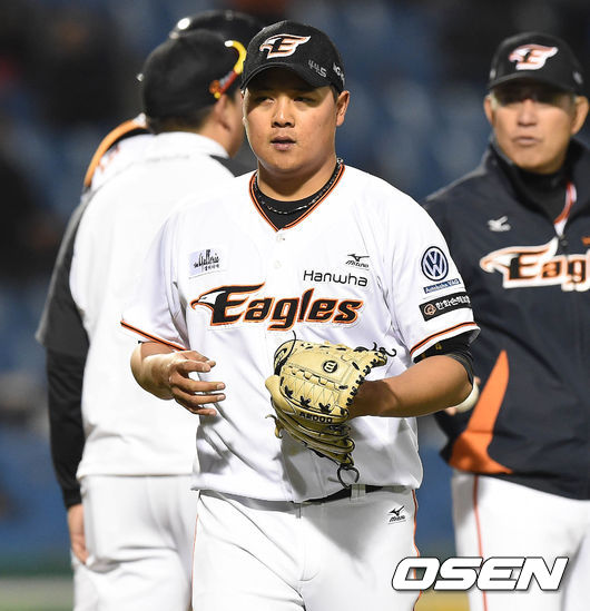 9일 오후 대전시 한화생명 이글스 파크에서 열린 '2015 타이어뱅크 KBO 리그' 한화 이글스와 LG 트윈스의 경기 4회초 2사 1,3루 유창식이 마운드를 내려가고 있다.