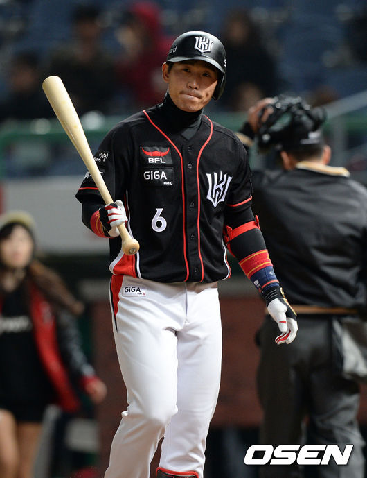 5회초 2사 2,3루에서 kt 박경수가 삼진으로 물러나고 있다.