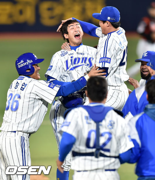 삼성의 뒷심이 더 강했다. 1점차 뒤진 9회말 공격 때 선두 타자 박석민이 롯데 소방수 김승회에게서 125m 짜리 좌월 솔로 아치를 터뜨렸다. 시즌 첫 대포. 그리고 최형우가 볼넷을 골라 상승 분위기를 이어갔다. 이승엽의 안타에 이어 구자욱의 끝내기 안타로 승부의 마침표를 찍었다.