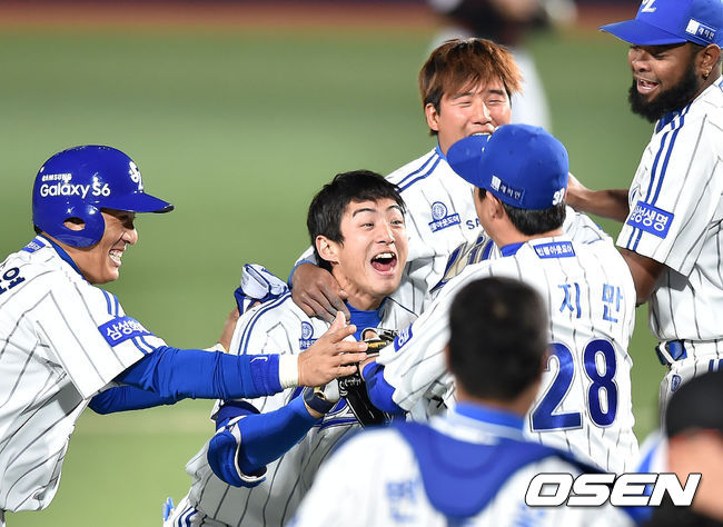 9회말 무사 주자 1,3루 삼성 구자욱이 끝내기 안타를 친 후 동료들과 기쁨을 나누고 있다. / rumi@osen.co.kr