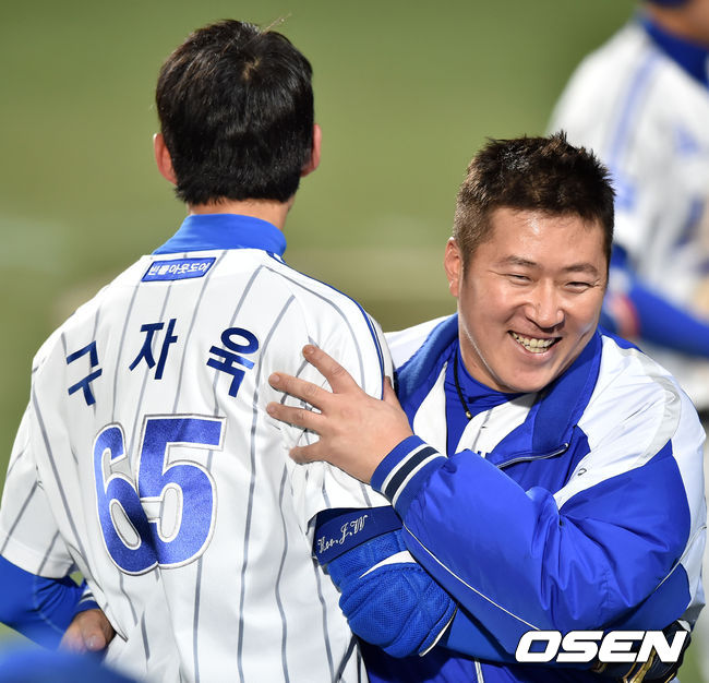 9회말 무사 주자 1,3루 삼성 구자욱이 끝내기 안타를 친 후 최형우와 기쁨을 나누고 있다. / rumi@osen.co.kr