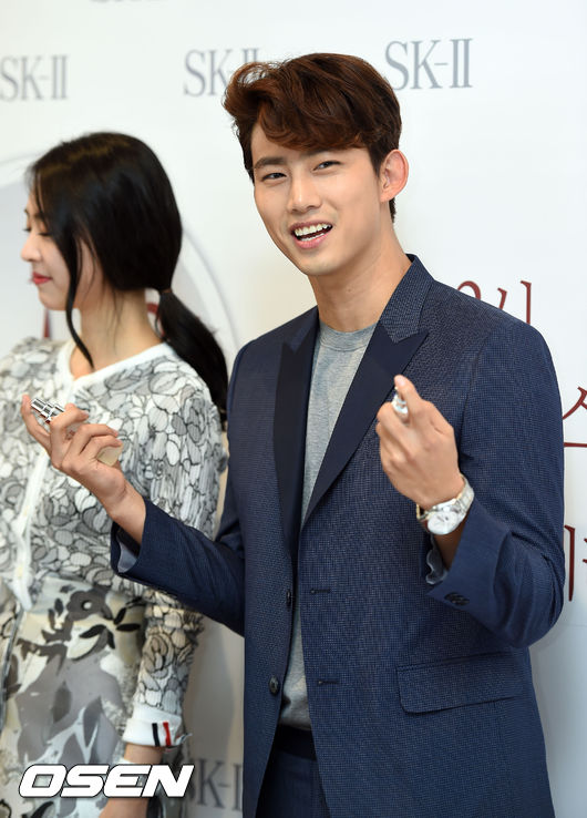 10일 오후 서울 잠실 롯데백화점 잠실점에서 진행된 SK-ll 피테라 미스트 론칭행사에서 배우 옥택연이 미스트를 뿌리고 있다.