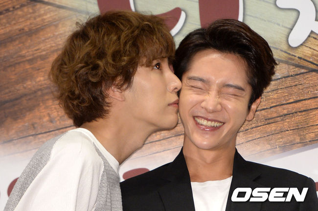 배우 노민우와 윤학이 포토타임을 갖고 있다.