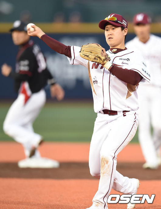 2회초 1사 1루 넥센 김지수가 kt 안중열의 땅볼 타구를 잡아 처리하고 있다.
