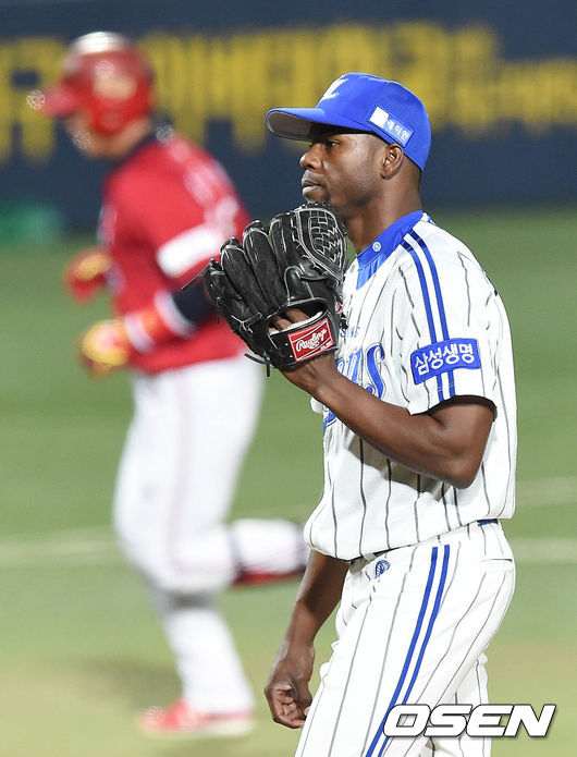 10일 오후 대구시민운동장 야구장에서 열린 '2015 타이어뱅크 KBO 리그' 삼성 라이온즈와 KIA 타이거즈의 경기 5회초 선두타자 김주찬에게 솔로홈런을 허용한 피가로가 마운드에 서 있다.