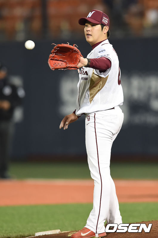 7회초 넥센 한현희가 삼진을 잡은 뒤 공을 건네받고 있다.