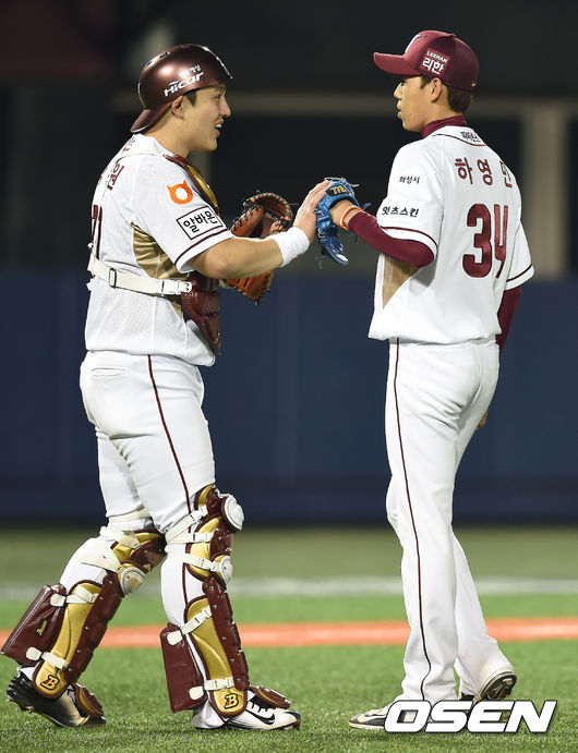 승리를 거둔 넥센 박동원과 하영민이 기뻐하고 있다. / youngrae@osen.co.kr