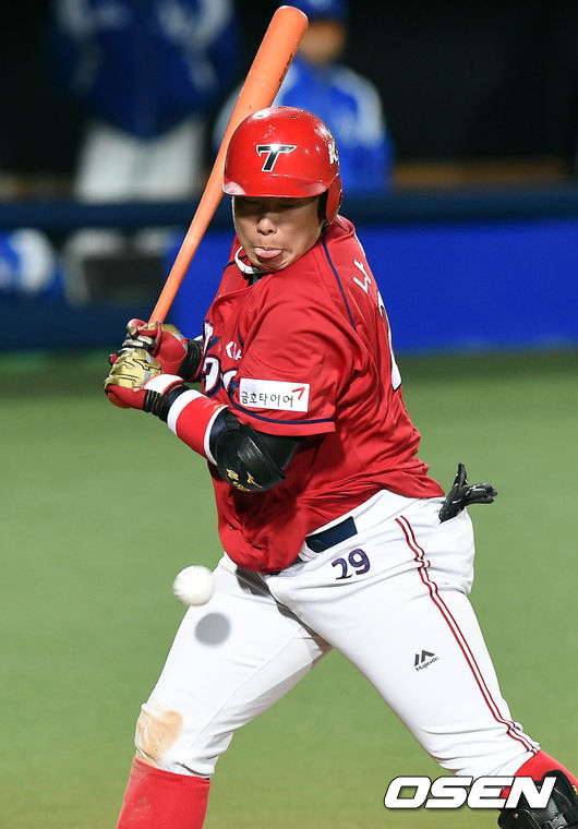 10일 오후 대구시민운동장 야구장에서 열린 '2015 타이어뱅크 KBO 리그' 삼성 라이온즈와 KIA 타이거즈의 경기 10회초 1사 나지완이 안지만의 투구에 몸을 맞고 있다.