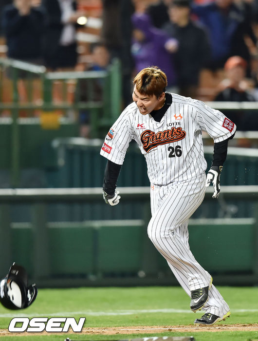 연장 11회말 2사 주자 2루 롯데 장성우가 끝내기 투런 홈런을 날릴 후 그라운드를 돌고 있다./ rumi@osen.co.kr