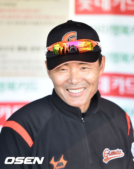 11일 오후 부산 사직구장서 '2015 타이어뱅크 KBO 리그' 롯데 자이언츠와 한화 이글스의 경기가 열릴 예정인 가운데, 롯데 이종운 감독이 덕아웃에서 환하게 미소짓고 있다.