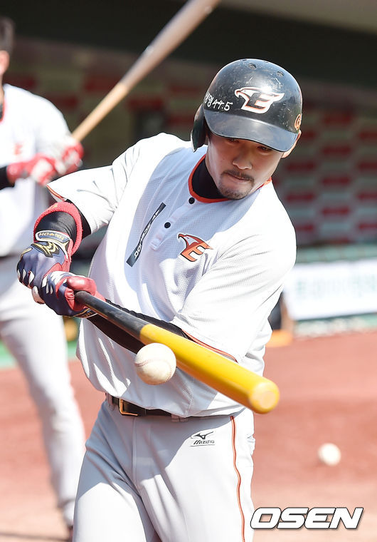 11일 오후 부산 사직구장서 '2015 타이어뱅크 KBO 리그' 롯데 자이언츠와 한화 이글스의 경기가 열릴 예정인 가운데, 한화 이용규가 타격연습을 하고 있다.