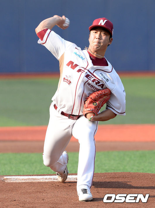 1회초 무사에서 넥센 선발투수 문성현이 힘차게 공을 던지고 있다.