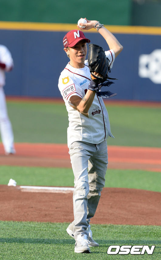 경기에 앞서 그룹 하이포 알렉스가 시구를 하고 있다.