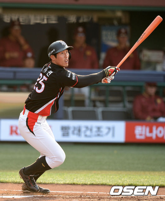 2회초 2사 1루에서 kt 김사연이 우전 안타를 치고 있다.