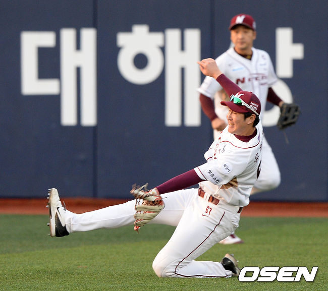 5회초 1사에서 넥센 유한준이 kt 마르테의 타구를 잡아내고 있다.