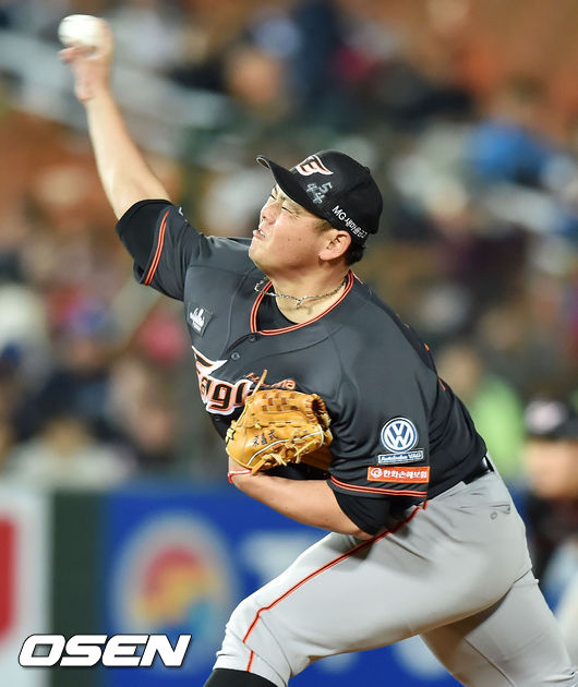 11일 오후 부산 사직구장서 열린 '2015 타이어뱅크 KBO 리그' 롯데 자이언츠와 한화 이글스의 경기, 7회말 마운드에 오른 한화 송창식이 힘차게 공을 뿌리고 있다.