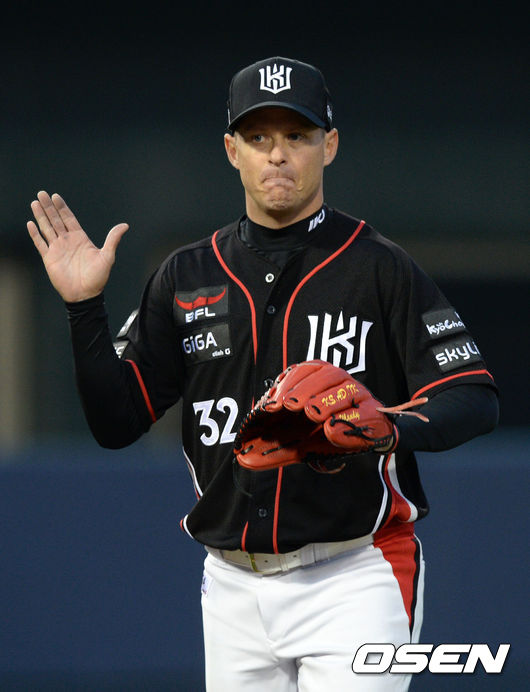 kt wiz 베테랑 우완 크리스 옥스프링이 완벽 피칭으로 팀의 창단 첫 승을 이끌었다.