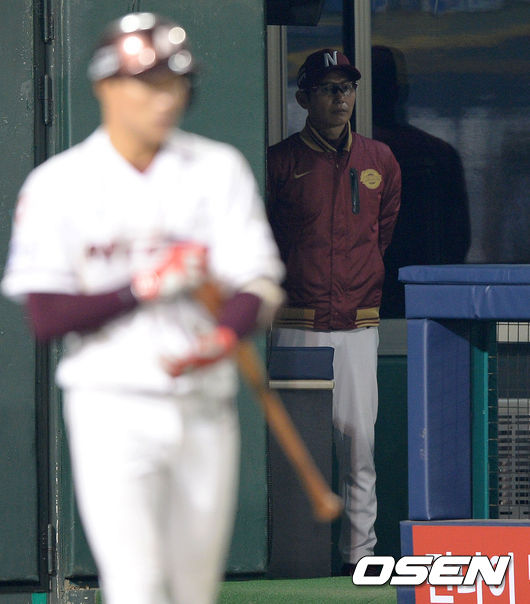 8회말 넥센 염경엽 감독이 경기를 바라보고 있다.