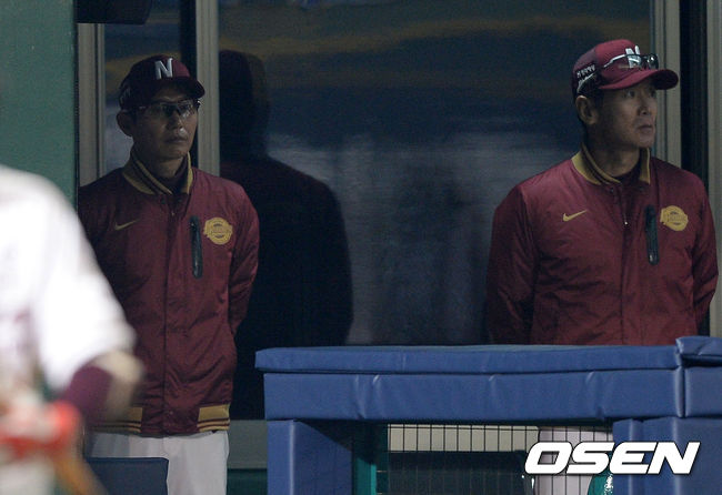 8회말 넥센 염경엽 감독이 경기를 바라보고 있다.