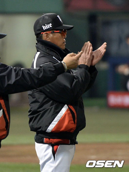 경기 종료 후 kt 조범현 감독이 선수들에게 박술를 보내고 있다./sunday@osen.co.kr