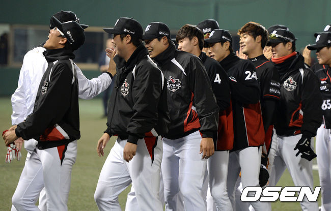 경기 종료 후 kt 선수들이 승리의 기쁨을 나누고 있다./sunday@osen.co.kr