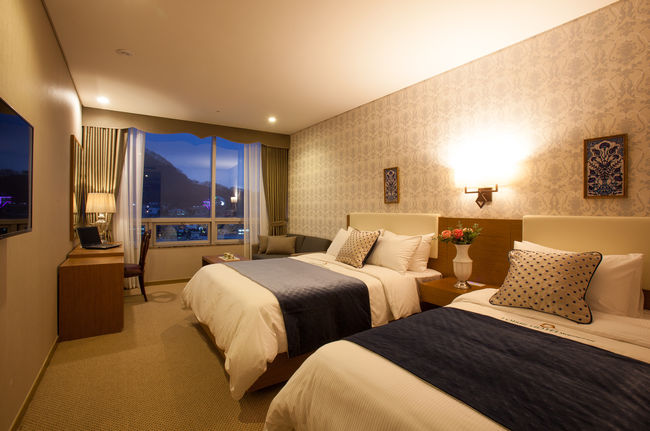 B 타입은 디럭스 트윈 & 더블 주중(일~목) 요금은 18만 원대부터 주말(금~토) 요금은 20만 원대부터 시작이다. 오뜨미엘 레스토랑 2인 조식 뷔페 포함 구성되어 있고, 봉사료는 별도이다.