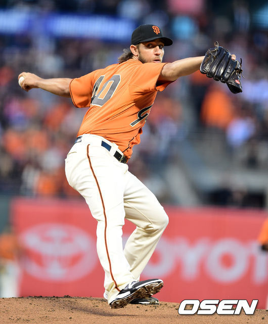 지난해 팀의 월드시리즈 우승을 이끌었던 매디슨 범가너(샌프란시스코)가 허무하게 무너졌다.