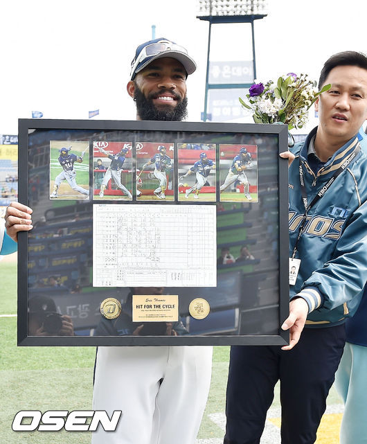 지난 9일 광주 KIA 챔피언스 필드에서는 NC 에릭 테임즈가 홈런과 3루타, 2루타 두 방에 단타까지 치는 불꽃 방망이를 휘둘러 프로야구 통산 17번째 사이클링 히트를 기록했다.