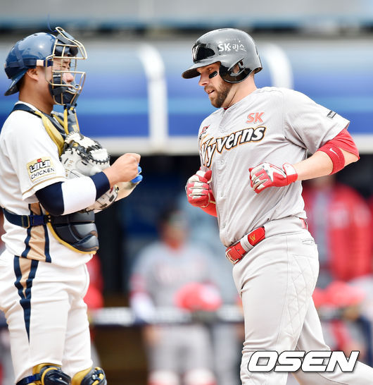 SK는 12일 마산구장에서 열린 ‘2015 타이어뱅크 KBO리그’ NC와의 원정경기에서 장단 11안타를 때려낸 타선의 힘을 앞세워 11-8로 승리를 거뒀다. 이로써 SK는 시즌 8승(4패)째를 올리며 NC를 제치고 2위에 올라섰다. 이날 승리의 일등공신은 단연 SK의 막강한 타선이었다.