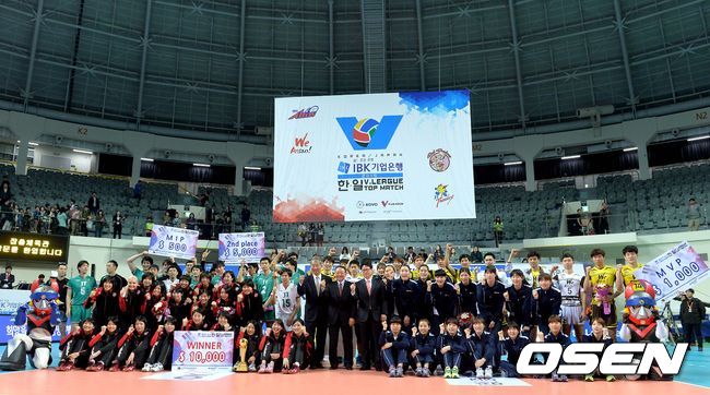 대회에 참가한 한국 대표 OK저축은행과 IBK기업은행, 일본 대표 NEC와 JT팀 선수들이 모두 모여 기념촬영을 하고 있다./dreamer@osen.co.kr