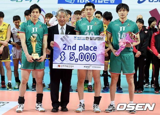 남자부 준우승을 차지한 일본 JT 선더스 선수들이 기념촬영을 하고 있다./dreamer@osen.co.kr