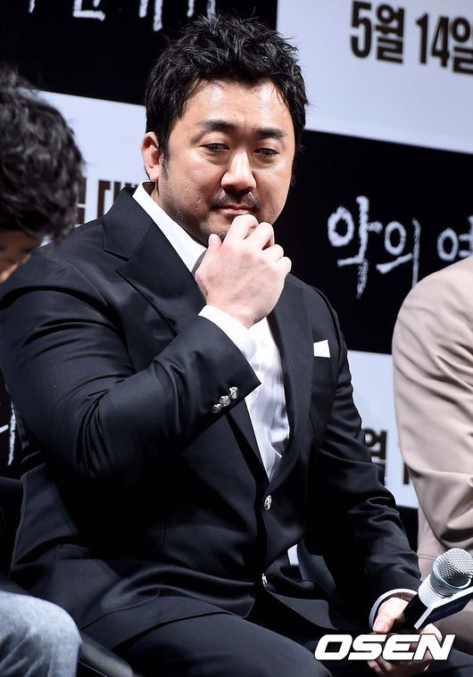 배우 마동석이 13일 오전 서울 신사동 CGV압구정에서 진행된 영화 '악의 연대기'(감독 백운학) 제작보고회에 참석해 사회자의 질문을 듣고 있다.