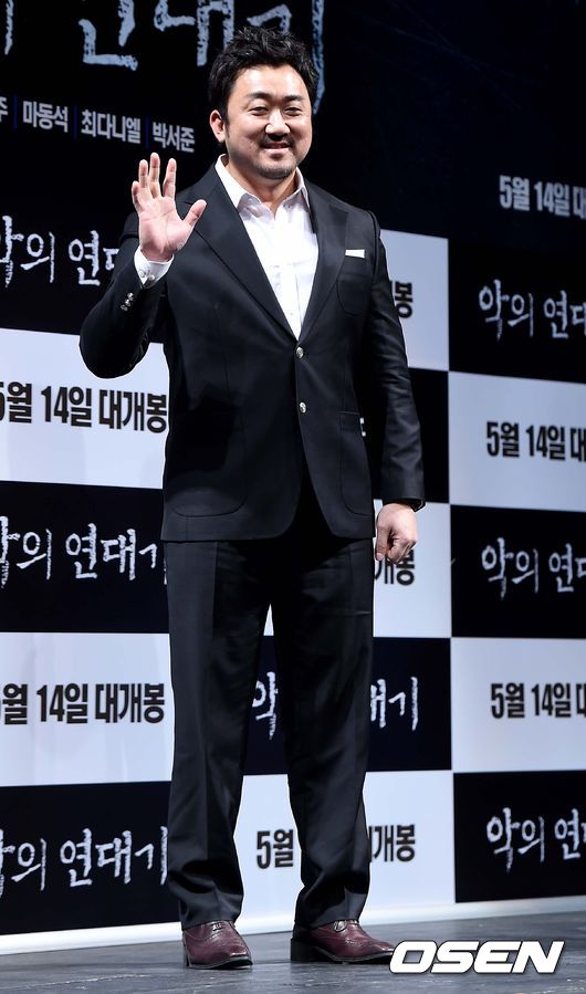배우 마동석이 13일 오후 서울 신사동 CGV압구정에서 진행된 영화 '악의 연대기'(감독 백운학) 제작보고회에 참석해 포토타임을 갖고 있다.
