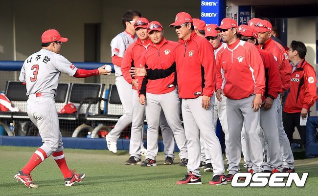 그 때 그 기억을 가지고 있는 선수들 중 지금은 1군에서 자리를 잡기 위해 열심히 뛰는 선수들이 많습니다. 1억 원의 기준은 슬그머니 5000만 원으로 내려갔지요. 김용희 감독은 “왜 5000만 원으로 내려갔는지 모르겠다. 내가 밥을 1000만 원 어치 먹을 텐데 연봉 5000만 원으로 누구 입에 붙이겠는가”라고 웃습니다. 밥보다 더 중요한 것은 좋은 활약이겠지요. 그래도 제자들의 마음씨에 내색 흐뭇한 표정은 숨길 수 없습니다.