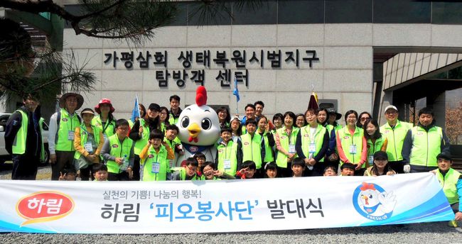 하림 피오봉사단 가족 2기는 북한강 일대 가평 삼화 생태복원 시범지구를 찾아 발대식을 열고, 첫 번째 생태현장 봉사활동 프로그램을 진행했다. 부모와 초등학생 자녀 40여명으로 이루어진 피오봉사단 가족은 생태 전문가의 해설 아래 우리 토종 생태계를 관찰하며 환경보호에 대한 의미를 되새기는 시간을 가졌다. 또한 생태학습 시간 이후에는 북한강변의 유해 외래식물을 제거하는 환경정화 봉사활동을 펼치며, 환경보호를 위한 첫발을 내디뎠다.
