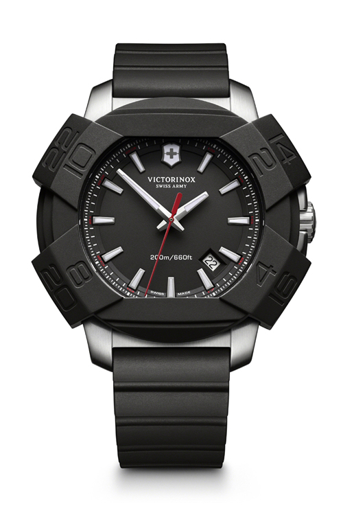 보기에도 강인함이 느껴지는 빅토리녹스 '이녹스' 워치는 10미터 상공 낙하, 64톤 밀리터리 탱크의 압력, 섭씨 영하 51도에서 영상 71도까지의 기온차 실험 등 130번의 엄격한 테스트 등 어떠한 외부 환경에서도 견딜 수 있도록 특수 설계됐다. 강화 스테인레스 스틸 케이스와 탈부착이 가능한 블랙 범퍼는 외부의 충격 보호와 함께 착용시 유니크하고 시크한 매력이 느껴진다.
