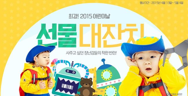 롯데닷컴은 오는 5월 4일까지 어린이날 선물을 미리 준비하는 '부지런한 부모'를 위해 '최강 2015 어린이날 선물 대잔치'를 진행한다. 이번 기획전은 어린이에게 인기가 높은 완구제품은 물론 부모들이 아이를 위해 사주고 싶어하는 아동패션잡화, 카시트, 유아용 테이블식탁 등 다양한 제품을 한자리에 모아 할인된 가격에 선보인다.