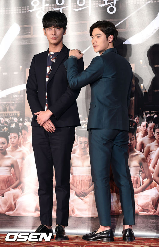 14일 서울 건대입구 롯데시네마에서 진행된 영화 '간신'(감독 민규동, 제작 수필름)의 제작보고회에서 배우 주지훈과 김강우가 포즈를 취하고 있다.