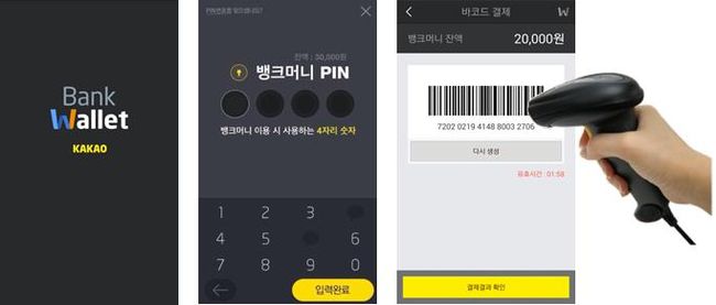 뱅크월렛카카오(이하 뱅카)는 금융결제원과 국내 17개 은행이 다음카카오와 공동으로 출시한 모바일 전자지갑으로 보안카드나 공인인증서 같은 별도의 인증체계가 필요없으며, 상대방의 계좌를 몰라도 카카오톡 친구 아이디로 메시지를 전송하듯 간단하게 송금 등이 가능한 핀테크 금융서비스.