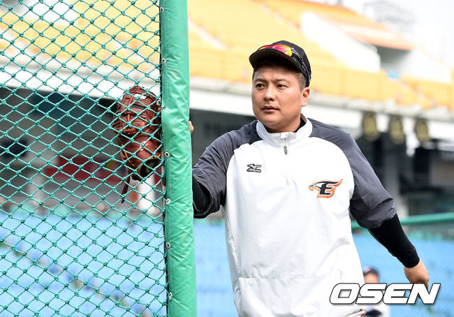 경기에 앞서 한화 김태균이 수비 훈련을 준비하고 있다.