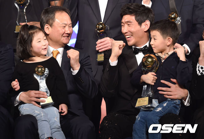 모비스 유재학 감독이 양동근의 자녀와 함께 포토타임을 갖고 있다. / youngrae@osen.co.kr